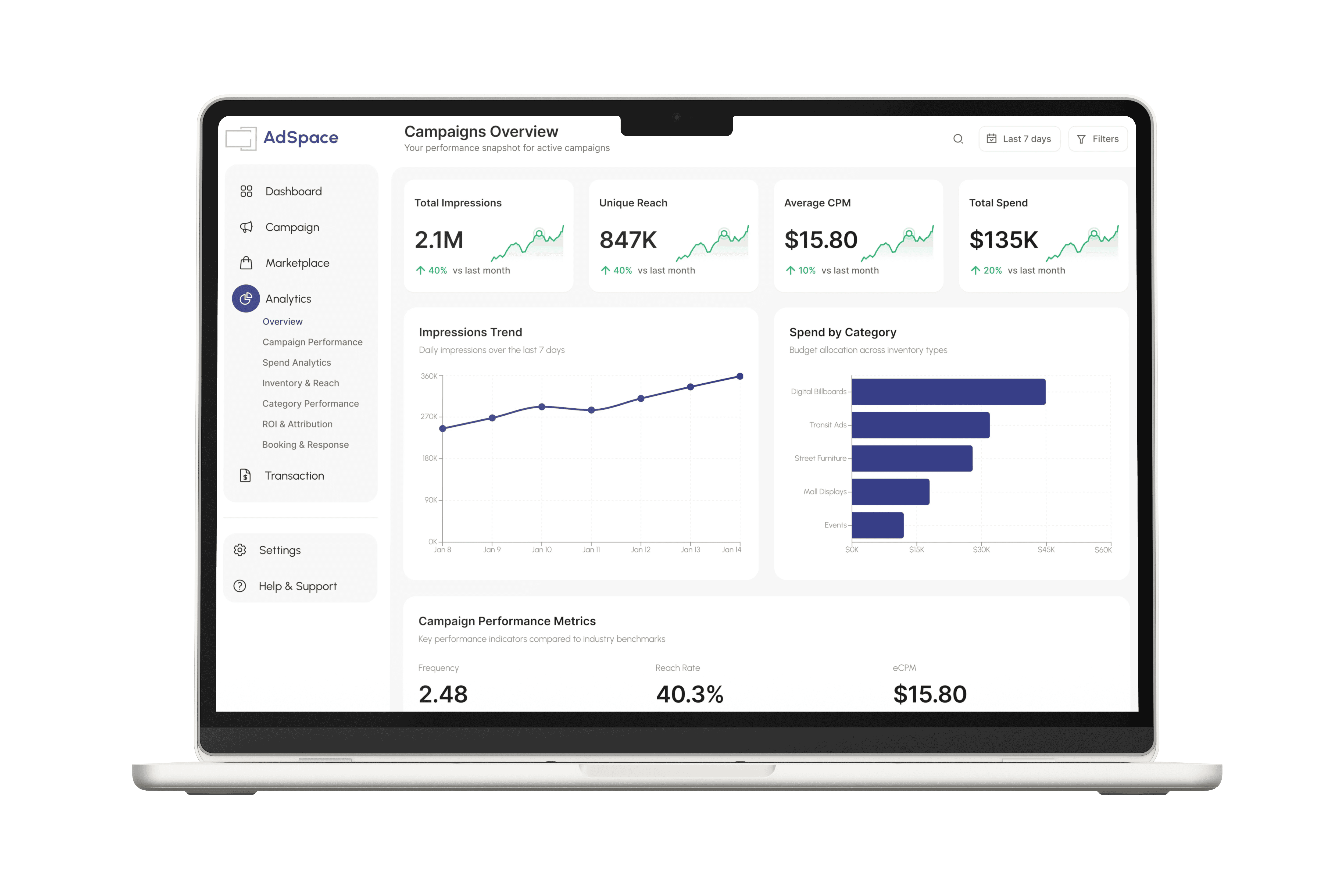Analytics is an integral component of your AdSpace Marketplace plan. It is automatically enabled based on your selected tier, ensuring your measurement scales with your business.